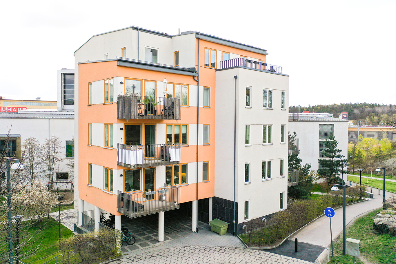 I kvarteret finns även två förskolor som har sin lekplats på innergården, de ger ett mycket positivt bidrag till en levande och social boendemiljö. Kvarteret inrymmer dessutom två restauranger och ett café som ytterligare förstärker känslan av ett levande kvarter, vilket i sin tur leder till att hyresgästerna upplever en trygg närmiljö.